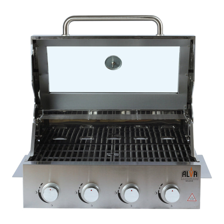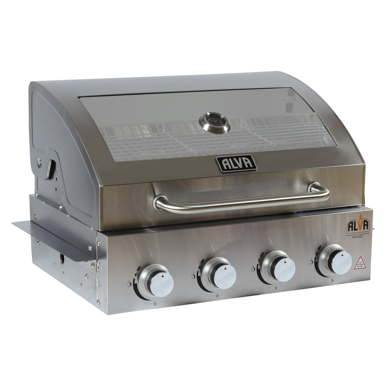 • Whether you're grilling up steaks, burgers, or vegetables, the ALVA Mojave 4-Burner Glass Hood Drop-In Gas BBQ is the perfect built-in addition to your outdoor cooking setup