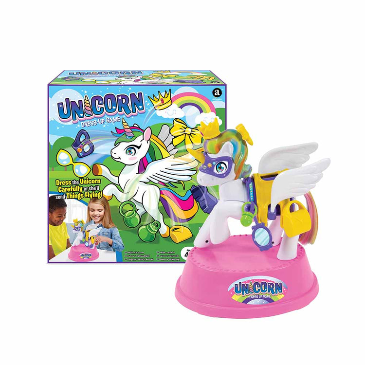 Take turns placing the saddle, blanket, wings, mask, and countless other parts on to the unicorn. Who will be the ultimate winner?