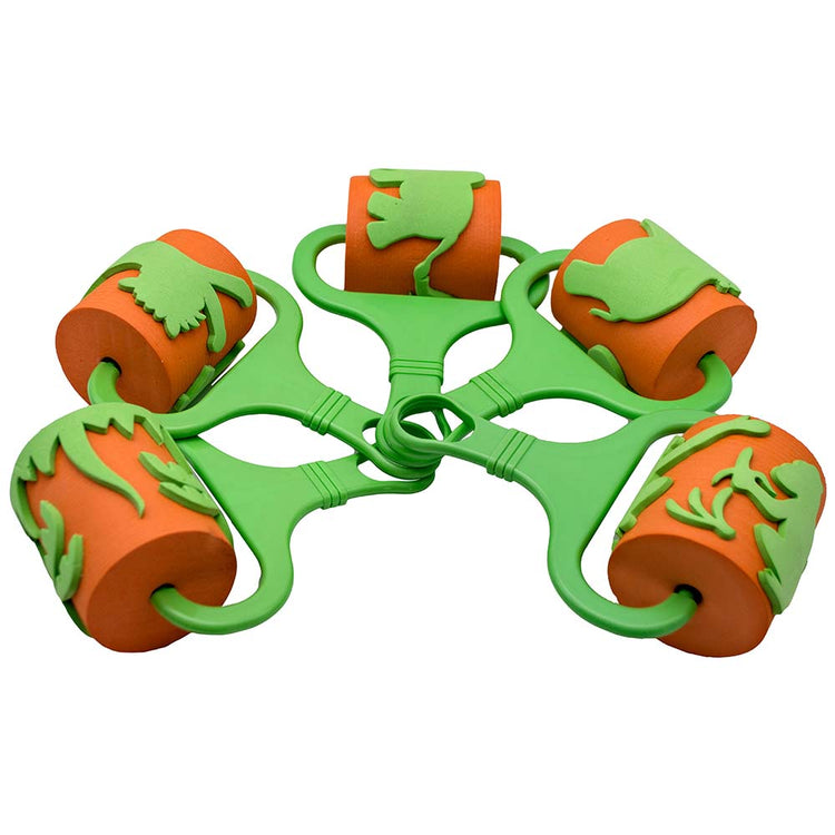 This set includes 5 rollers each featuring a different jungle pattern including elephant, monkey, hippopotamus, lion and jungle background.