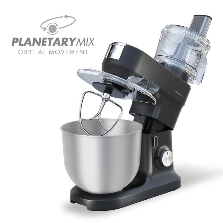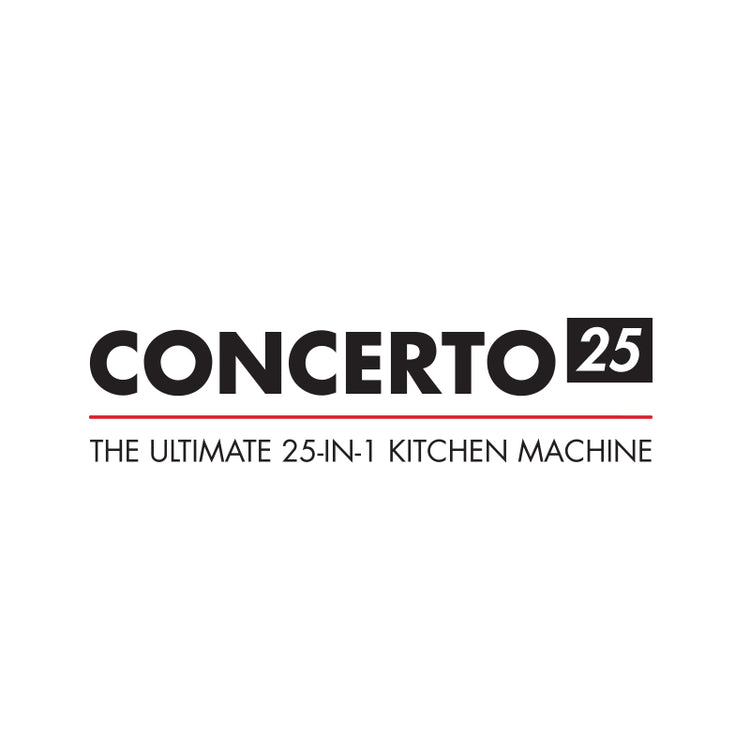 For when you need to knead, whip, whisk, beat, cream, fold, stir, emulsify, mash, combine, mix, blend, chop, dice, mince, puree, slice, cut, shred, grate, crush, juice, stuff, grind & press... Wow! That’s a mouthful. Take your love of cooking & baking to the next level with the extra-large, 8 litre, 25-in-1 Concerto 25 kitchen machine! Speed up food prep time with 1200W of electric power & variable stepless speeds that all combine to ensure smooth acceleration & complete control over delicate or heavy mixtures. The Bennett Read Concerto 25 Kitchen Machine features phenomenal mixing bowl capacity for up to 20 eggs, 2.5L cream, 2.5kg cake batter or 2.4kg of bread dough! Tilt-head design, detachable transparent Splashguard & convenient Feed Chute prevents splatter & mess, and allows for quick, easy & safe processing.