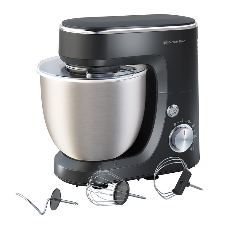 A Kitchen stand mixer that was designed to mix, knead, whip, whisk, beat, cream, fold, stir, emulsify & combine ingredients effortlessly! Produce high-quality textures alongside perfect, effortless results with the Marvello 10 from Bennett Read. Where power, creativity, versatility & capacity meet for ultimate time-saving & professional results.  Speed up food prep time with 800W of electric power, Planetary Orbital Mixing Movement & variable stepless speeds that all combine to ensure smooth acceleration & complete control over delicate or heavy mixtures. The 4.7L stainless steel mixing bowl handles up to 10 eggs, 1.8L cream, 1.5kg cake batter or 900g of bread dough. Tilt-head design, detachable transparent Splashguard & convenient Feed Chute prevents splatter & mess, & allows for quick, easy & safe processing.