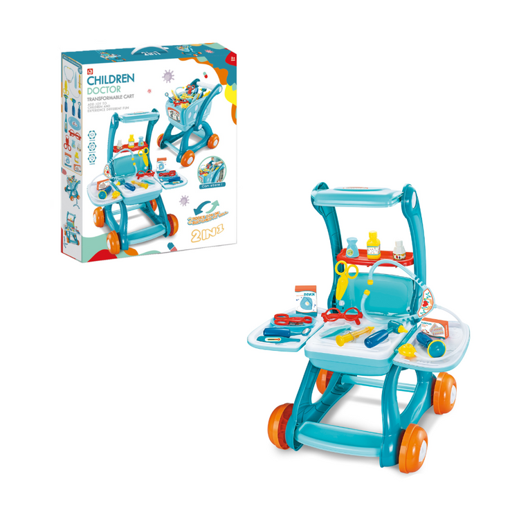 The Cogo 2-in-1 Pretend Play Doctor Tool Set & Cart brings medical role-play to life! This versatile set transforms into both a medical cart and a trolley, offering children hours of creative play. Featuring a variety of medical accessories, including a stethoscope, scissors, pliers, and more, it allows kids to step into the role of a doctor. With light blue and dark blue colors, this set encourages imaginative play and helps develop problem-solving and motor skills.