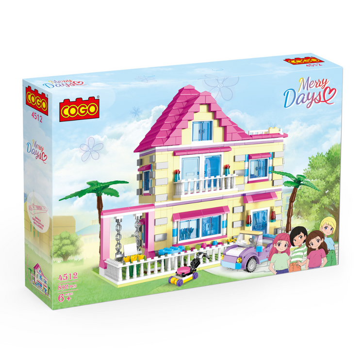 Create the ultimate villa life with the Dream House Building Block Set! This 892-piece set features a warm and inviting villa complete with a lawn, car, lawn mower, swing, and coconut tree elements. Designed to bring the fantasy of happy villa living to life, the set includes dreamy pink roofs and eaves that add a whimsical touch. Perfect for hours of imaginative play, it encourages creativity and fine motor skills while offering endless fun. Compatible with other major building block brands.