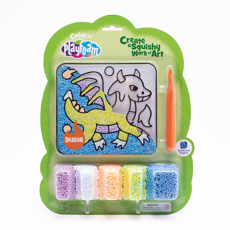 Enjoy hours of creative fun with Colour By Playfoamョ Dragon. Use Playfoam and squish it into the canvas of this dragon themed craft kit to create a colourful masterpiece, then scoop it out and start all over again. Playfoam never dries out so the squishing fun never ends.