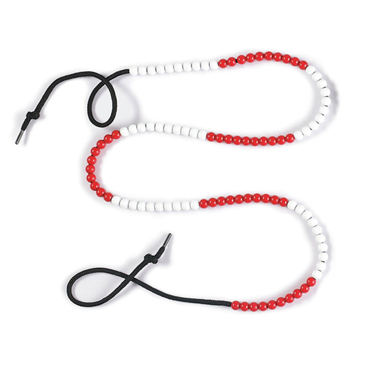 The red and white beads can be alternated in numerical groups to help children picture multiples, forming the basis of multiplication concepts. A great tool for hands on learning.
