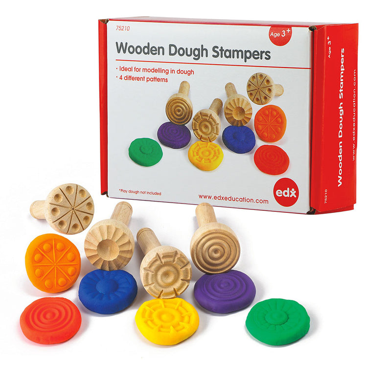 Robust wooden stampers with 4 different patterns. For use with modelling dough or making cookies.
