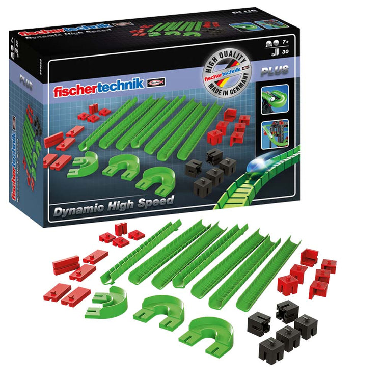 With the Dynamic High Speed Expansion Set, there are no limits on creativity, to bring even more action and speed to the Fischer Technik marble runs.