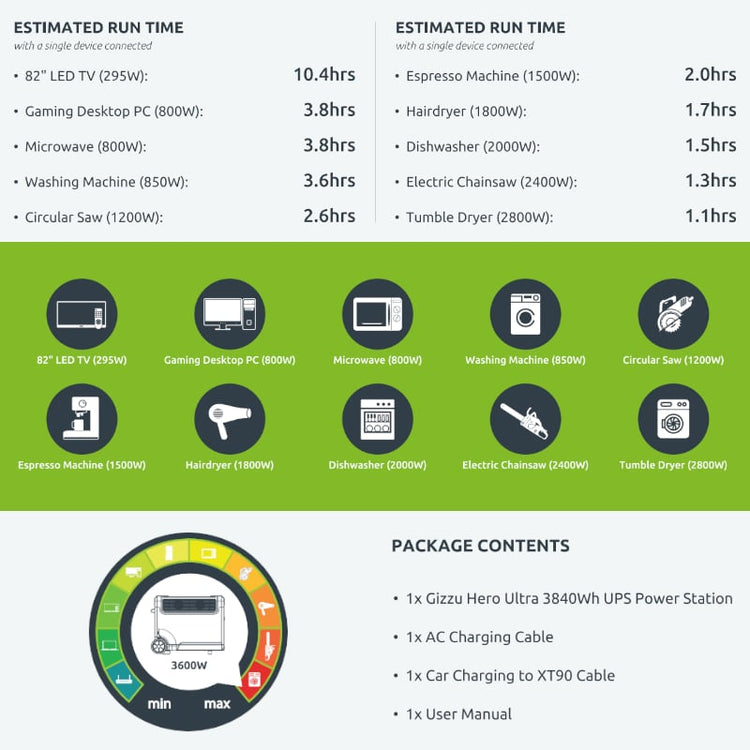The Gizzu Hero Ultra UPS Power Station is a must-have for any outdoor adventurer. With a generous 3840Wh battery capacity, it can keep your devices charged and power household appliances during loadshedding. Featuring multiple ports and Pure Sine Wave technology, it seamlessly switches to battery power without interruption.ย