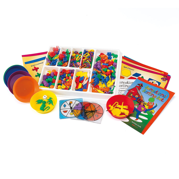This bright and colourful classroom set of counting and sorting manipulatives comes with a large 8 compartment storage tray, student activity cards, and a comprehensive teacher痴 guide. Popular for at home learning through play as well!