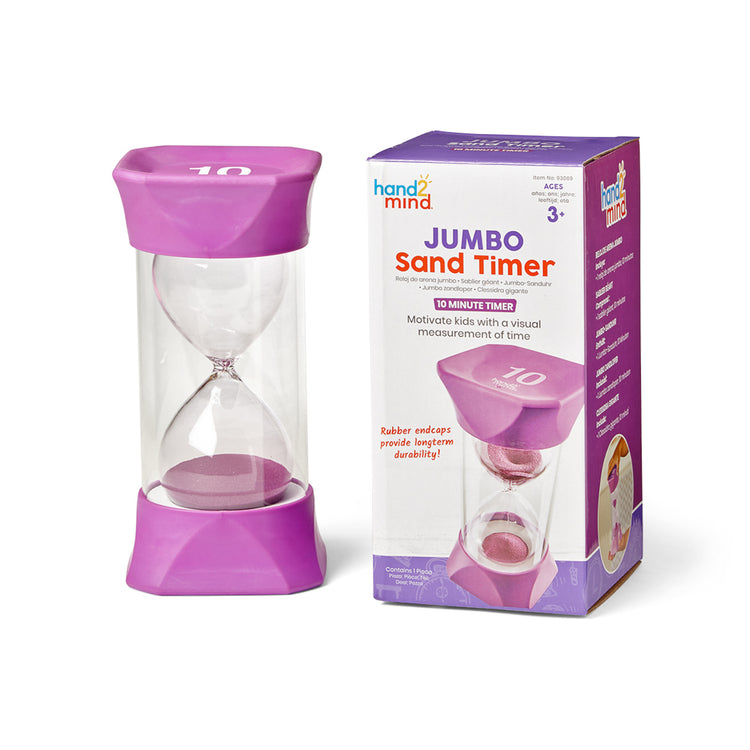 This colourful Jumbo Sand Timer is ideal for use in the classroom or at home to give children a visual representation of the passing of 10 minutes. It痴 oversized and sturdy, making it great for little hands. The rubber endcaps give the timer greater durability and allow for quiet pausing of the timer. The mesmerising motion of the colourful purple sand is ideal for a calm-down area in the classroom or at home.
