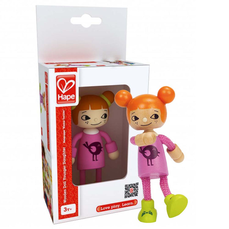 Every Hape wooden doll family needs a Wooden Doll Younger Daughter. How else would the other wooden doll children develop independent identities while their wooden doll parents shower attention on the youngest one? And having a younger sibling may just require the older children to fashion themselves into upright examples of role-model behavior.