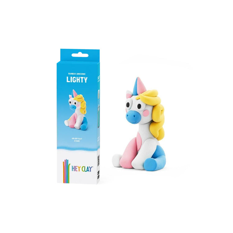 Hey Clay: Modelling Air-Dry Clay with Fun Interactive App - Lighty, 3 Cans:Rainbow Unicorns Series