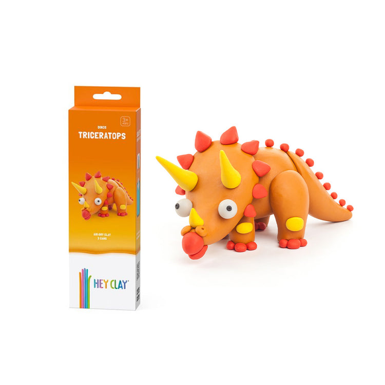 Hey Clay - Modelling Air-Dry Clay with Fun Interactive App - Triceratops, series Dinos, 3 cans