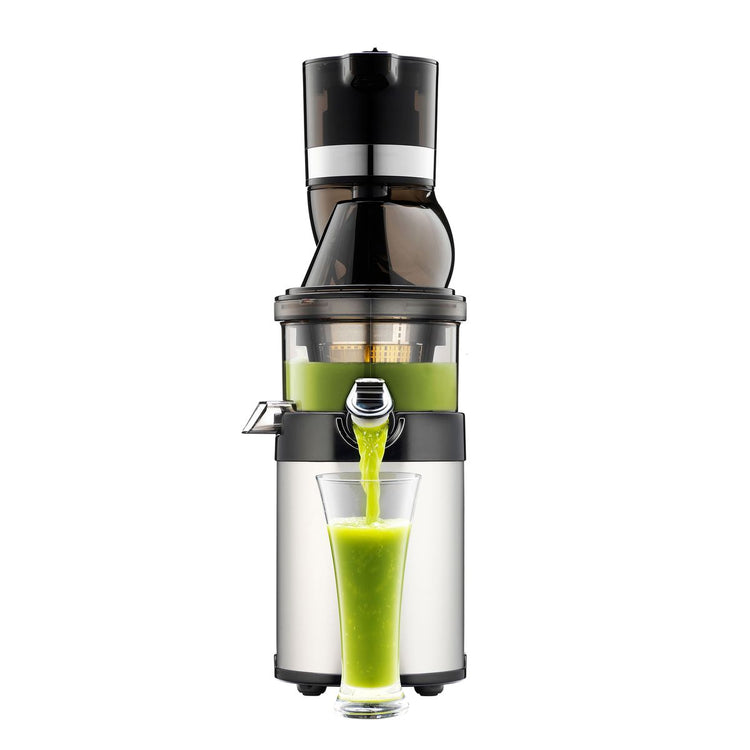 The juicer comes with a complete extra-top set making the switch over between recipes effortless (juice bowl, pulp scraper, juice strainer, juicing screw, juice lid and pusher).