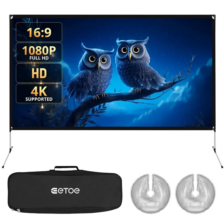 Transform any space into a cinema or presentation room with the ETOE 120-Inch Portable Projector Screen. Designed for convenience, it features a lightweight, foldable structure and comes with a compact carry bag—making it easy to transport and store wherever your presentation or movie night takes you.