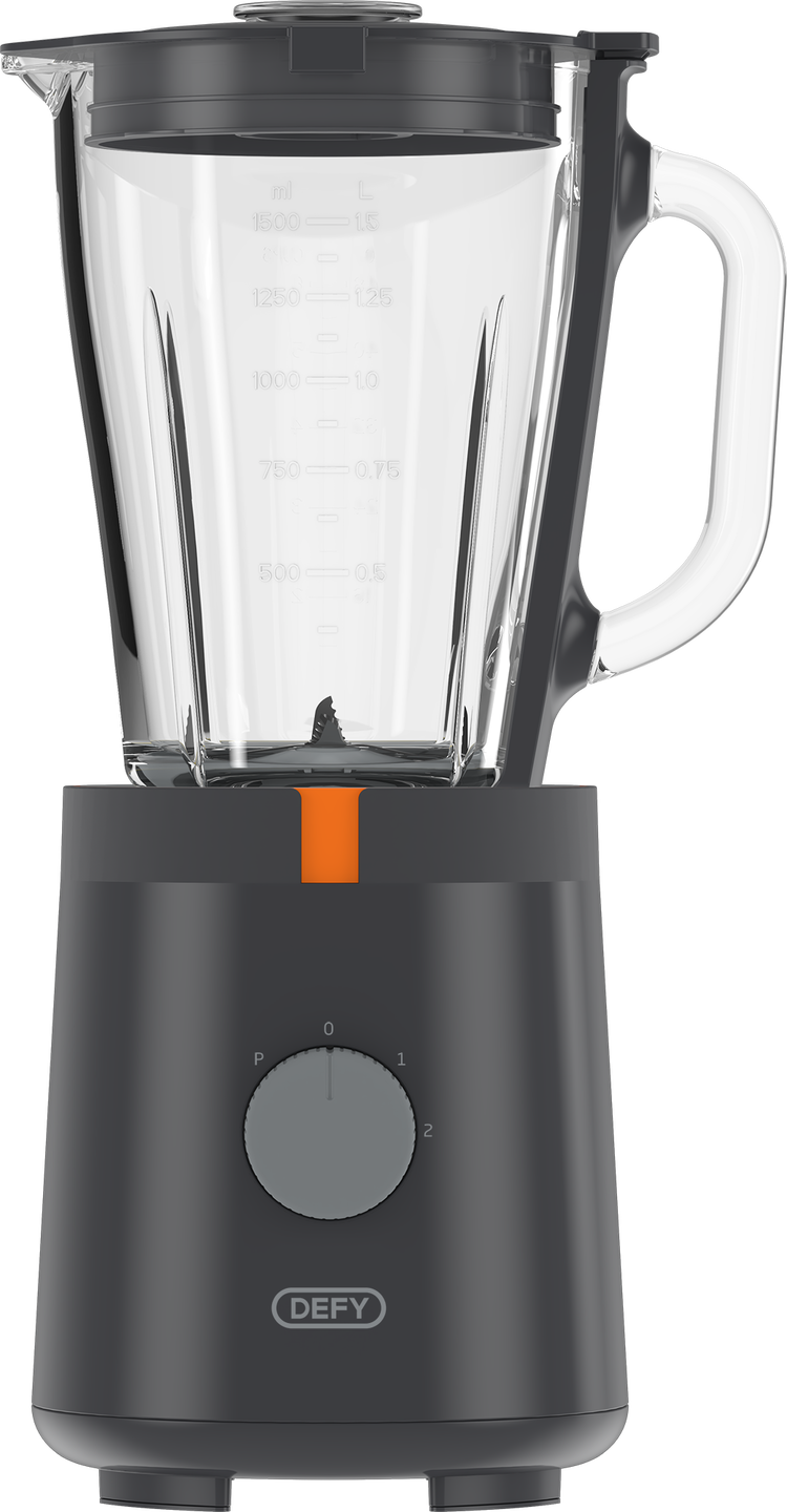 The Defy Glow Table Blender boasts a 500w motor, a 1.5L plastic jug with measuring units, 2-speed settings, and a pulse function for controlled blending. Its stainless steel 4-blade system ensures efficient blending. Optional chopper and grinder attachments are available for expanded functionality.