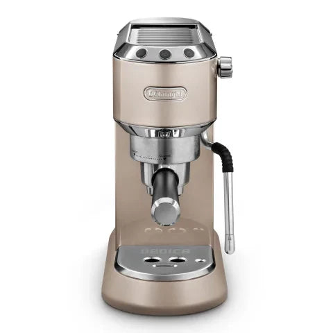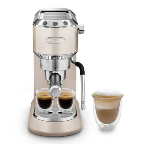 Enjoy barista style Italian coffee in the comfort of your own home with the Dedica Arte manual espresso machine. This machine brews a wide range of coffee and milk based beverages using your favourite blend of beans. Achieve a rich, intense espresso or a deliciously creamy milk texture for creamy cappuccinos or lattes. You'll love the compact design and sleek beige finish of this stylish and easy-to-use coffee machine.