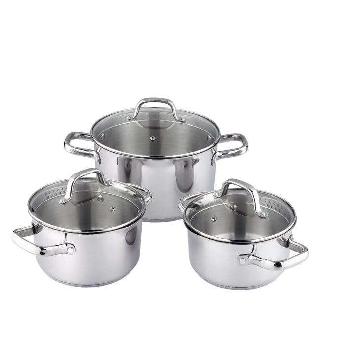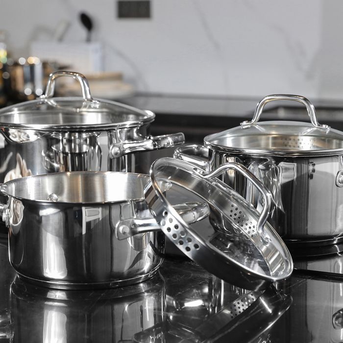 Designed for both everyday cooking and elegant entertaining, the Russell Hobbs Julienne Casserole Pot Set combines modern sophistication with practical performance. With polished stainless steel bodies, tempered glass lids, and thoughtful features, this set brings lasting quality and timeless appeal to your kitchen.