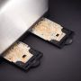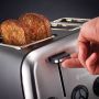 This Russell Hobbs Toaster is durable and functional. The black housing has been brushed for an appealing matt finish. The toaster is a 4-slice and it’s powered at 1750 watts. The toaster operates on 6 adjustable heat settings to control the desired browning of the toast. There are three additional functions on the side of the toaster which include defrost, reheat and cancel. The defrost setting is utilised for frozen bread, reheat allows for cold toast to be reheated and the cancel option may be utilised during operation.