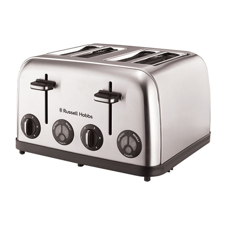 This Russell Hobbs Toaster is durable and functional. The stainless-steel housing has been brushed for an appealing matt finish. The toaster is a 4-slice and it’s powered at 1750 watts. The toaster operates on 6 adjustable heat settings to control the desired browning of the toast. . There are three additional functions on the side of the toaster which include defrost, reheat and cancel. The defrost setting is utilised for frozen bread, reheat allows for cold toast to be reheated and the cancel option may be utilised during operation.