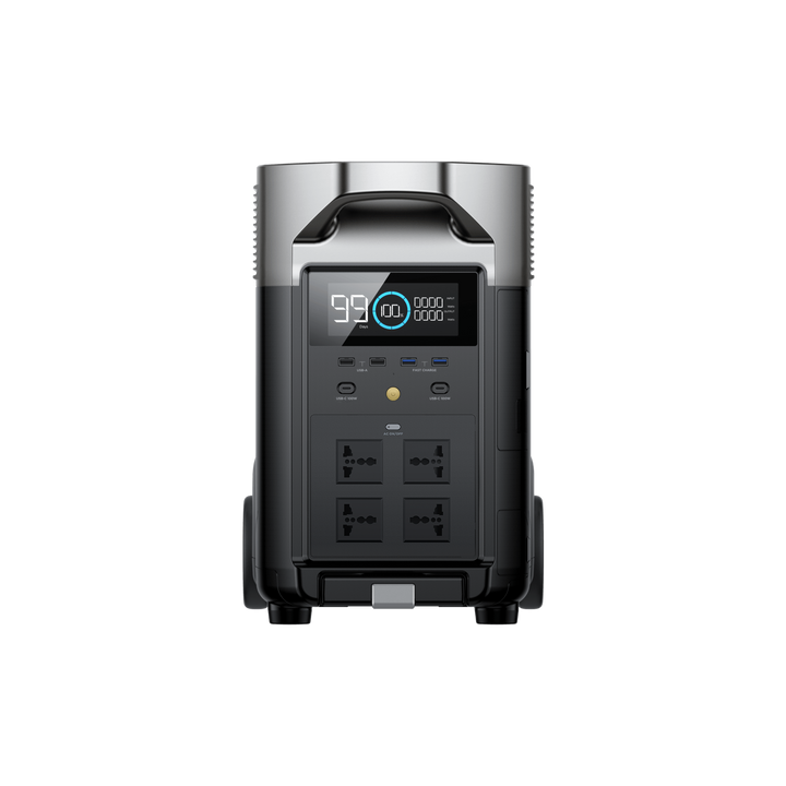 The EcoFlow DELTA Pro 3600Wh Portable Power Station stores an industry-leading 3600Wh of power and includes 4 AC outlets, dual charging support, and an expandable capacity.