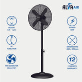 Alva 40cm Metal Telescopic Pedestal Fan 1.2M Tall (Matte Black) ACS201B