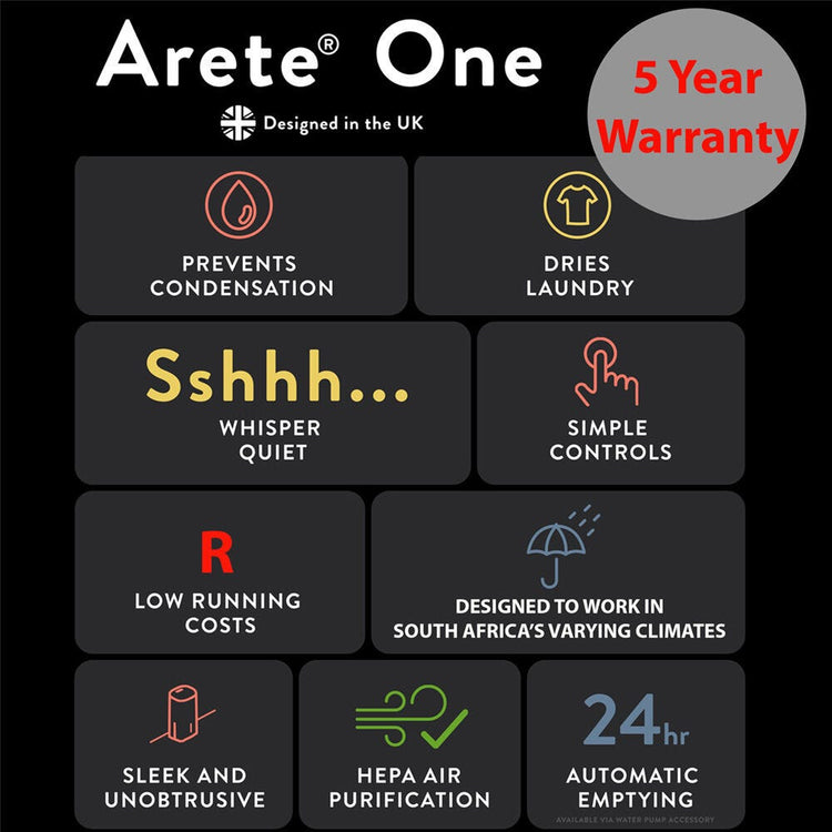 And with its 5-year warranty, you can rest assured that the MeacoDry Arete® One 12L Low Energy Dehumidifier / Air Purifier is a reliable and long-lasting investment for your home. With its combination of energy efficiency, air purification, and laundry drying capabilities, it's no wonder that this dehumidifier has won awards.