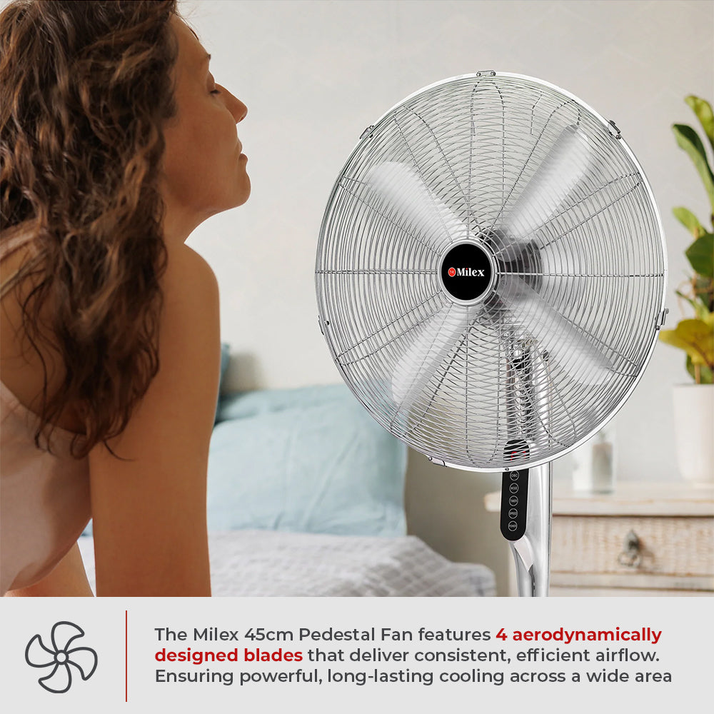 Milex 45cm Pedestal Fan – Refined Comfort, Elegant Cooling