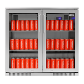 Engineered with an energy-efficient inverter compressor and fan-assisted cooling system, the SMBC-200SS maintains consistent temperatures between 0°C and 10°C to keep your beverages perfectly chilled. Lockable heated tempered glass doors add a layer of security and reduce condensation in humid environments, while adjustable powder-coated metal shelves offer flexible storage for bottles and cans of all sizes.
