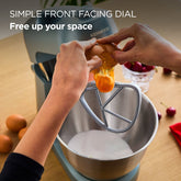 With simple intuitive control placed front and centre, Kenwood Go allows you to get to straight to the fun of baking. Discover the nose-on dial which encourages front on use and frees up space around the mixer; a clever space-saving solution where countertop space is a premium.