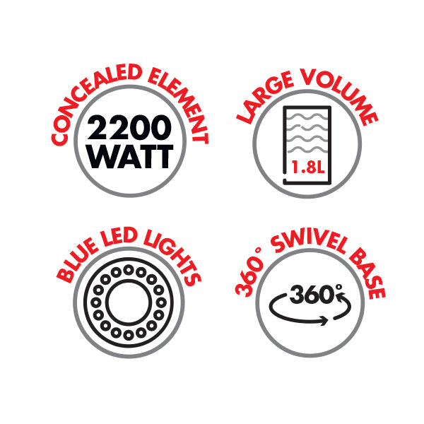 Who said size doesn't matter? We’ve definitely created a stir with our Bennett Read Grande Kettle. With its large 1.8L capacity, 360° swivel base, 2200W concealed heat element and stylish stainless steel features, this Bennett Read Grande Kettle is the perfect combination of elegance, power and convenience. Its modern design features a full glass body and bright blue interior LED lights when in boiling mode. Not to mention the one-touch auto-lid that opens to a full 90° for effortless cleaning and filling. Added features like the safety-lock lid, auto shut-off and boil dry protection were also designed with your safety top of mind.