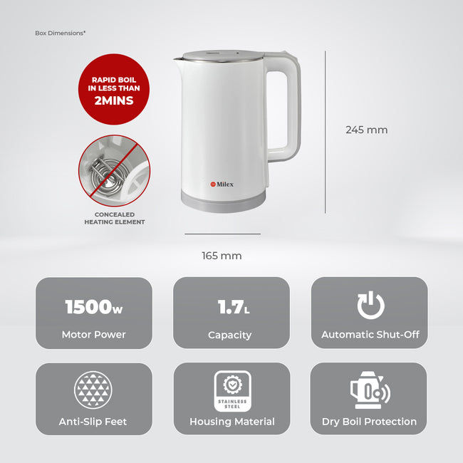 Milex 1.7L Electrical Kettle – Modern Design, Effortless Brewing