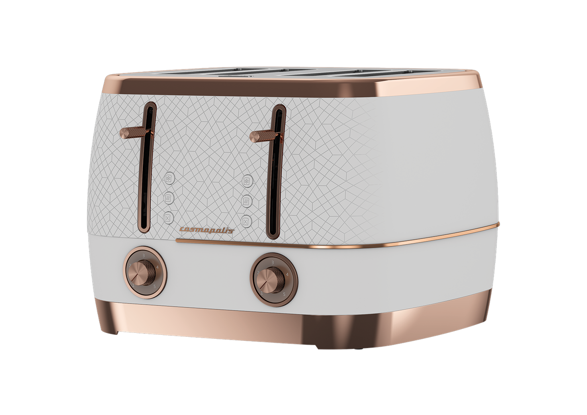 Upgrade your breakfast routine with the Beko Cosmopolis 4 Slice Toaster White Rose Gold - TAM8402W, where impeccable design meets versatile functionality for a delightful start to your day.