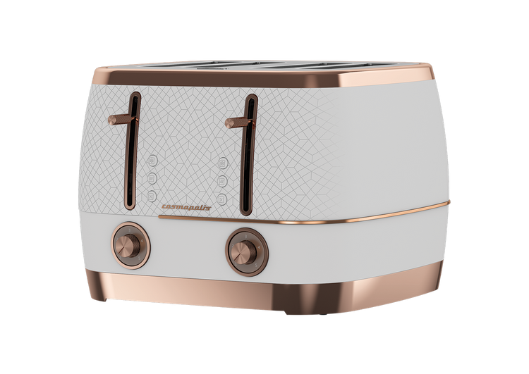 Introducing the Beko Cosmopolis 4 Slice Toaster in an elegant White Rose Gold finish - the TAM8402W, where style meets functionality for a delightful breakfast experience.