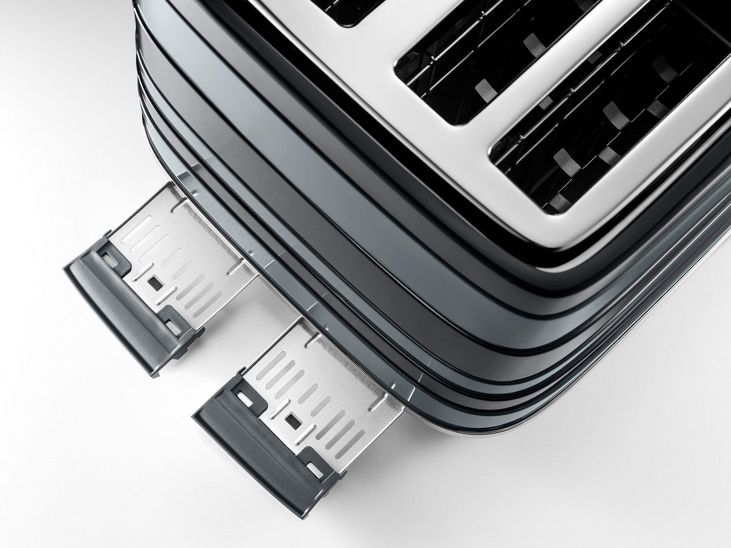 - Extra-wide and deep slots with self-centering racks for toasting bread of