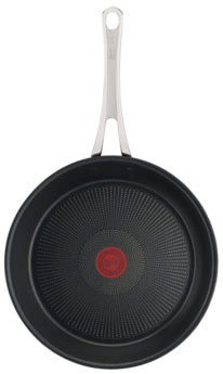 Riveted handles for secure grip. Super non-stick coating infused with titanium. Thermo-Signal Technology for precision cooking. Suitable for all hobs including induction.