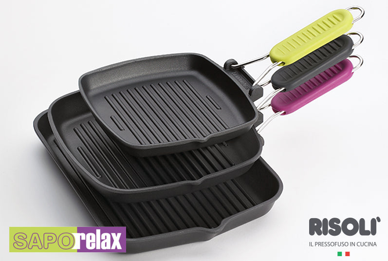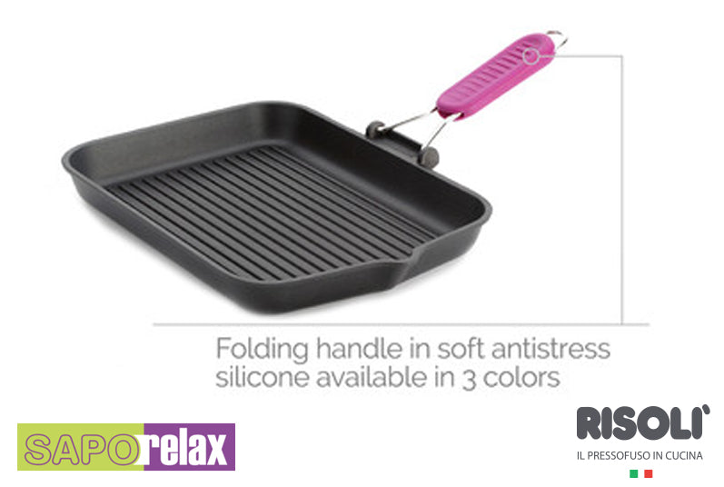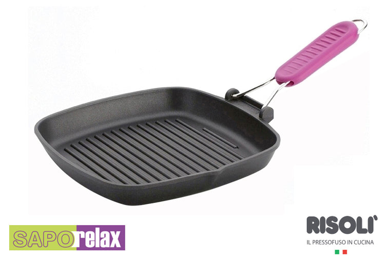 Risoli Saporelax Non-stick Grill Pan With Pink Folding Handle 20cm 0090AX2/20TO