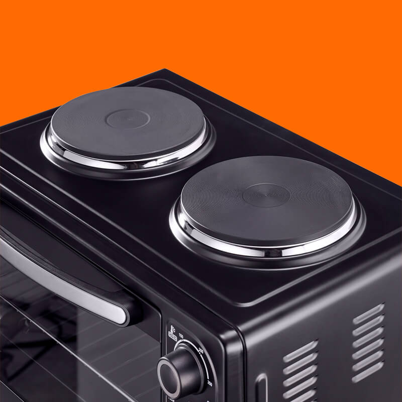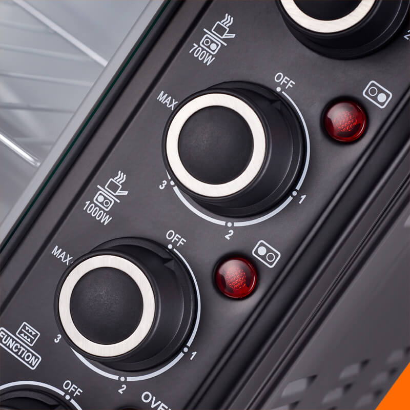 • Power: 1500W oven | 1000W hotplate (large) | 800W hotplate (small)