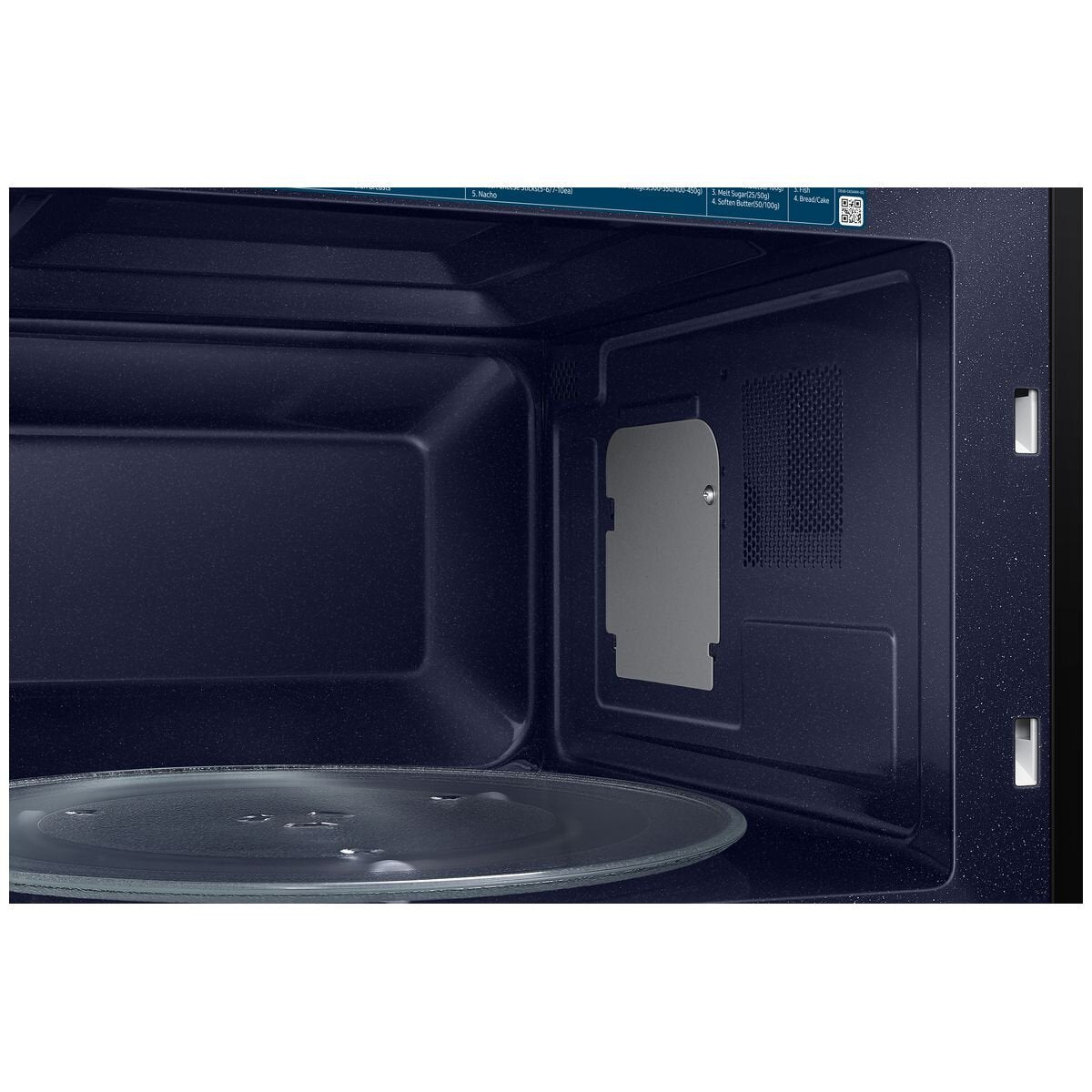 Clean up after cooking easily. The CERAMIC INSIDE™ can be cleaned without scrubbing and won’t discolor*. Hohenstein confirms that the product “enamel of microwave oven” shows an antibacterial activity of 99.9%**. And it’s about 24x more scratch resistant than stainless steel***. * Based on internal testing. Test 1. High temperature & humidity: 120 hours in a humidity tank at 60°C and 90% humidity. Test 2. Chemicals: (a) Acid resistance: 15 minutes in a citronic acid solution. (b) Alkali resistance: 15 minutes in an anhydrous sodium carbonate solution. Both then soaked for 1 hour in a 5% sodium hydroxide solution. Result: no abnormalities found. ** Based on internal testing in accordance with the ISO 22196 standard. Prevents the growth of 99.9% of Staphylococcus aureus and Escherichia coli bacteria. Results may vary depending on the actual usage conditions. *** Based on internal testing in the Global Technology Center of Samsung in accordance with the ISO 20502 standard. For a critical load of scratches, the CERAMIC INSIDE™ enamel is about 24x more durable than stainless steel. Results may vary depending on the actual usage conditions.