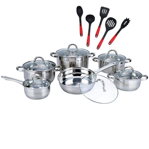 Get ready to stir up trouble of the tastiest kind with our 12pc Supreme cookware set! It’s so versatile that even your pots and pans might break into song. And guess what? It includes a complete utensil set with a stand – because every chef deserves their own utensil entourage!