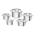 - Set includes 1 stock pot (16cm / 2 litre), 1 stock pot (20cm / 3.5 litre), 1 stock pot (24cm / 6 litre), 1 stew pot (20cm / 3 litre), 1 saucepan (16cm / 1.5 litre)