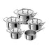 - Set includes: 1 stock pot (16cm / 2 litre), 1 stock pot (20cm / 3.5 litre), 1 stock pot (24cm / 6 litre), 1 stew pot (20cm / 3 litre), 1 saucepan (16cm / 1.5 litre)