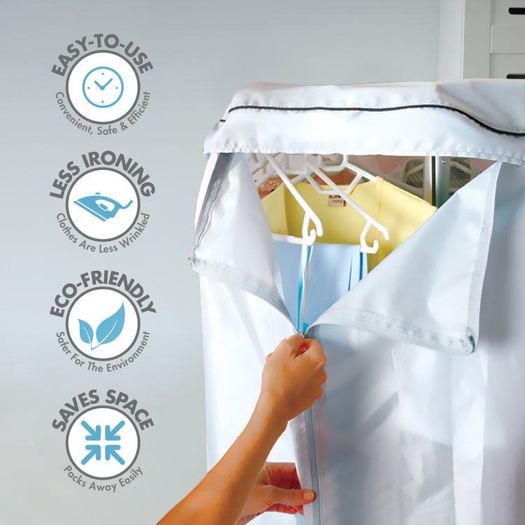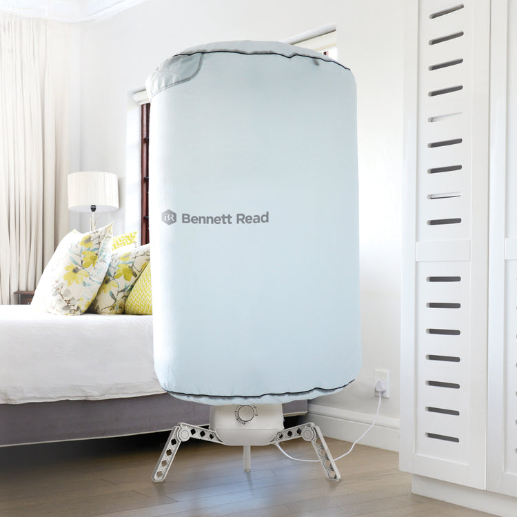The extra-efficient, portable & convenient. Clothes drying system. Bennett Read 900w DriBuddi uses less electricity than a conventional tumble dryer* reducing harmful effects on the environment. Dry up to 10kg of damp clothing per load in 1 - 5 hours.** Won’t leave your clothes as wrinkled, saving you time on ironing. Dries many types of clothing that are unable to be dried in a tumble dryer.*** Safe and efficient. Simply hang your damp clothes, enclose with the zip-up cover and set the drying time. The easy-to-use timer makes it convenient, safe and efficient to use every day. Eco-friendly and versatile. The Bennett Read 900w DriBuddi is easy to fold up and transport making it ideal for caravanning and camping. Great as a regular. clothes horse and to hang clothes on while ironing. In winter, with the cocoon removed, it can also work perfectly as a quiet and effective room heater! Extended warranty. Your Bennett Read 900w DriBuddi comes standard with a 1 year warranty.