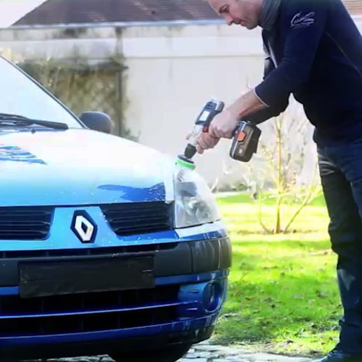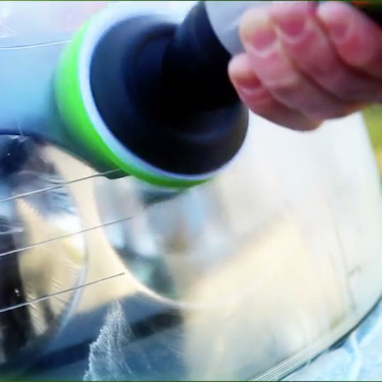 - Apply the headlamps and bodywork repairer cream using the foam pad attached to the drill adapter. Work in small sections for even coverage.