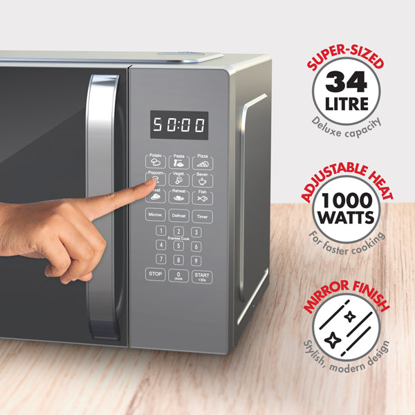 Super-sized capacity. Steam, bake & heat meals for the whole family with the versatile Bennett Read® 34L digital microwave! Premium design with stylish finishes. With a robust, duo-tone handle & stylish mirror glass door, this elegant, modern design will steal the show as an attractive addition to any kitchen. Digital led display. With a variety of useful features, including an integrated clock & 99 minute cooking timer, to provide accurate info for all your cooking needs. 8 one-touch presets. Easy-to-use, convenient preset functions for cooking baked potatoes, pizzas, frozen dinners & more at the touch of a button! Programmable power levels. Cook a variety of meals with precision using the 10 different programmable power levels. Multi-stage cooking allows you to defrost & cook meals in one go! Extended warranty. Your Bennett Read® 34L microwave comes standard with a 1 year warranty.