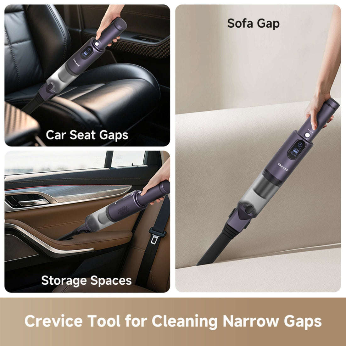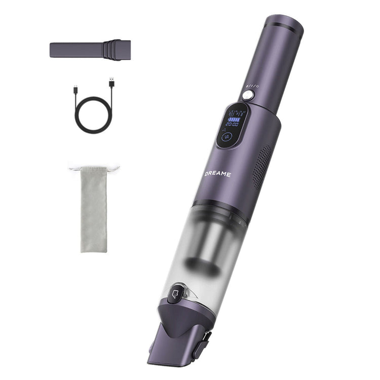 The Dreame Car Vacuum E10 is a lightweight and compact car vacuum designed for simple interior cleaning. It features a powerful 100,000 RPM digital motor, generating 14,000Pa of suction, capable of picking up "bean-size rocks.