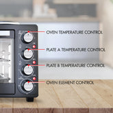 The multi-functional, space-saving kitchen assistant designed to suit all of your home cooking & baking needs. Create delicious meals while using minimal counter space with this compact & modern rendition of a kitchen classic. The Bennett Read 23L Compact Oven is engineered to provide even & consistent heat distribution while using less energy when compared to conventional cooking appliances. With durable stainless steel oven elements, adjustable temperature controls, multiple oven rack positions & dual solid-design hot plates that provide a complete solution with ample cooking space for you to create & serve a variety of recipes, family meals & baked treats.