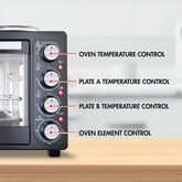 - Oven & hot plates can be used together or independently for increased flexibility