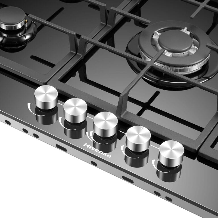 • 90cm Built-In Gas Hob-Black glass panel-Black Cast Iron Pan Support