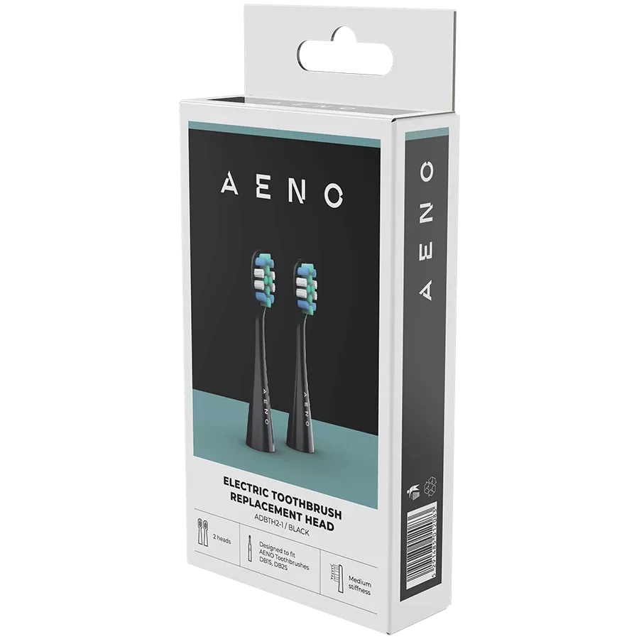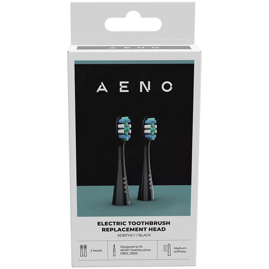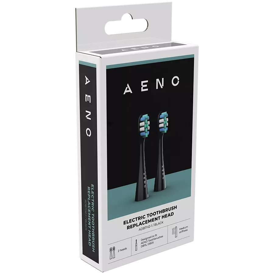 AENO Replacement toothbrush heads, Black, Dupont bristles, 2pcs in set (for ADB0002S/ADB0001S)